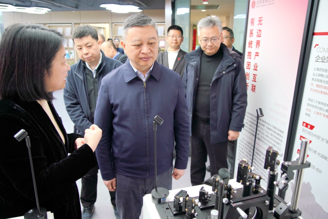 在上海芬创信息科技有限公司,李晨昊来到展厅,详细了解企业在智能制造先进光电子领域的深耕布局。李晨昊指出,光学技术在智能制造领域有着广泛应用,希望企业继续聚焦细分赛道做精做专,更好发挥专精特新企业示范引领作用,通过“企业出题、专业人才答题”模式,加快关键核心技术攻关,更好推动高端技术的集聚化、规模化、产业化发展。宝山也将做好服务保障,助力企业拓宽应用场景,实现更好发展。