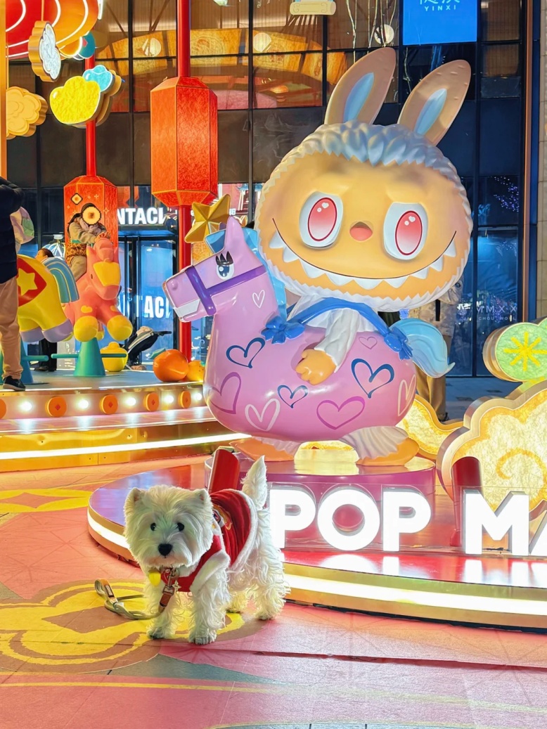 小狗也能逛灯会、坐旋转木马啦!