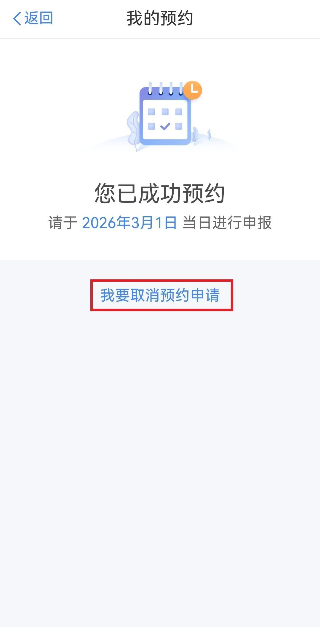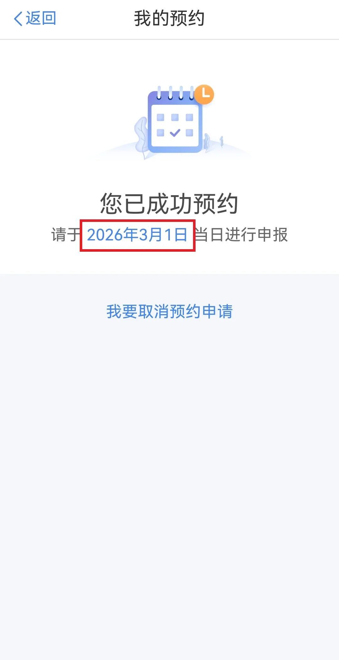 通过【首页-2025综合所得年度汇算】专题区域点击【查看预约】,便可以看到之前预约的具体日期。