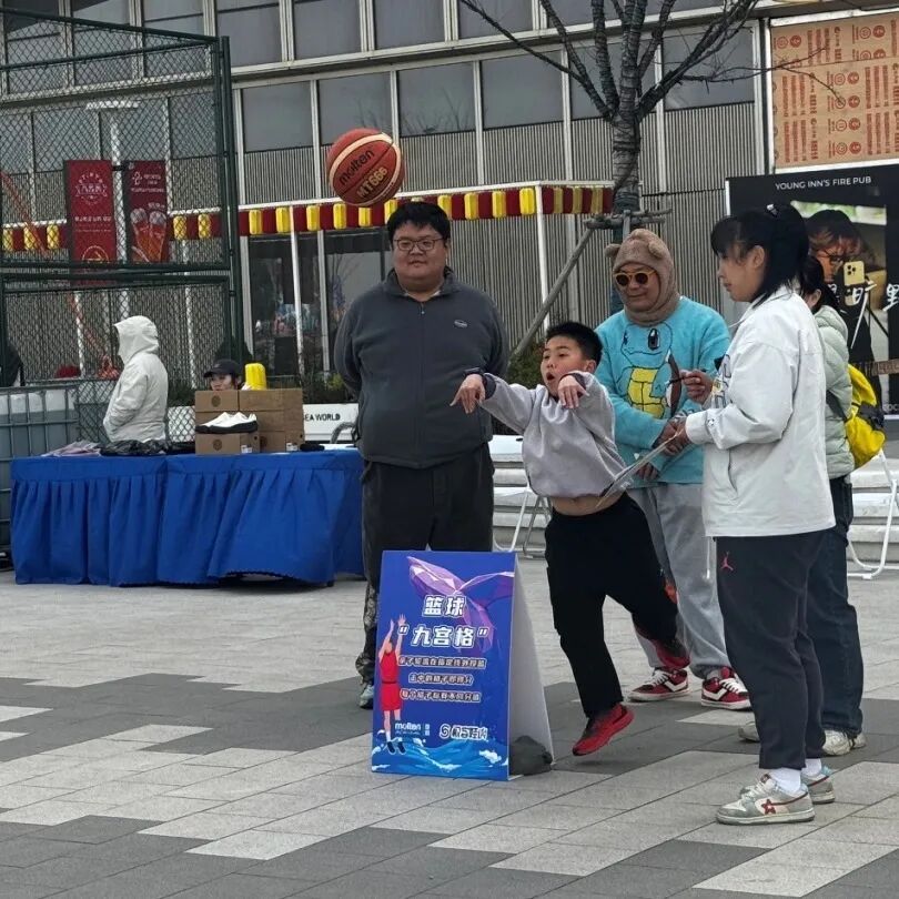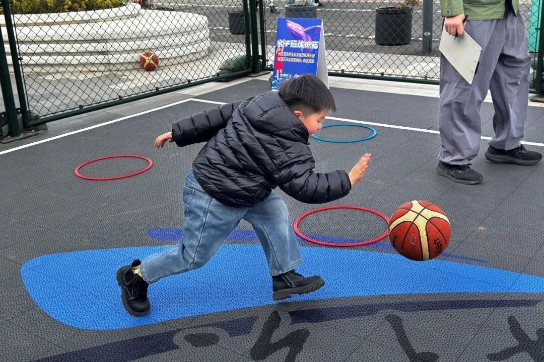 本次活动特别设置了“篮球九宫格”投篮挑战、亲子运球投篮挑战、定点投篮等多种特色挑战项目,无论是稚气未脱的少年,还是年过半百的篮球爱好者,都轮番上阵。