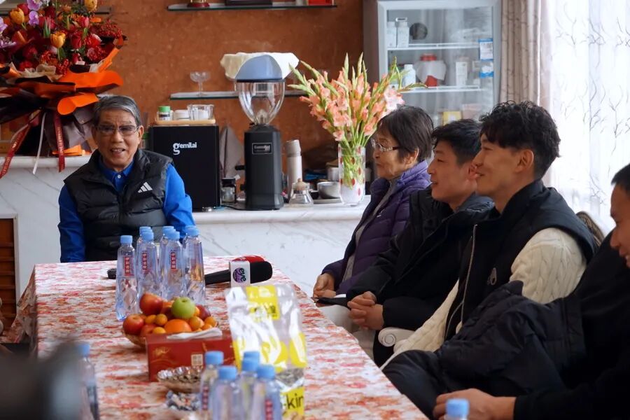 颜骏凌、吕文君、张琳芃(从左到右)春节回到根宝基地