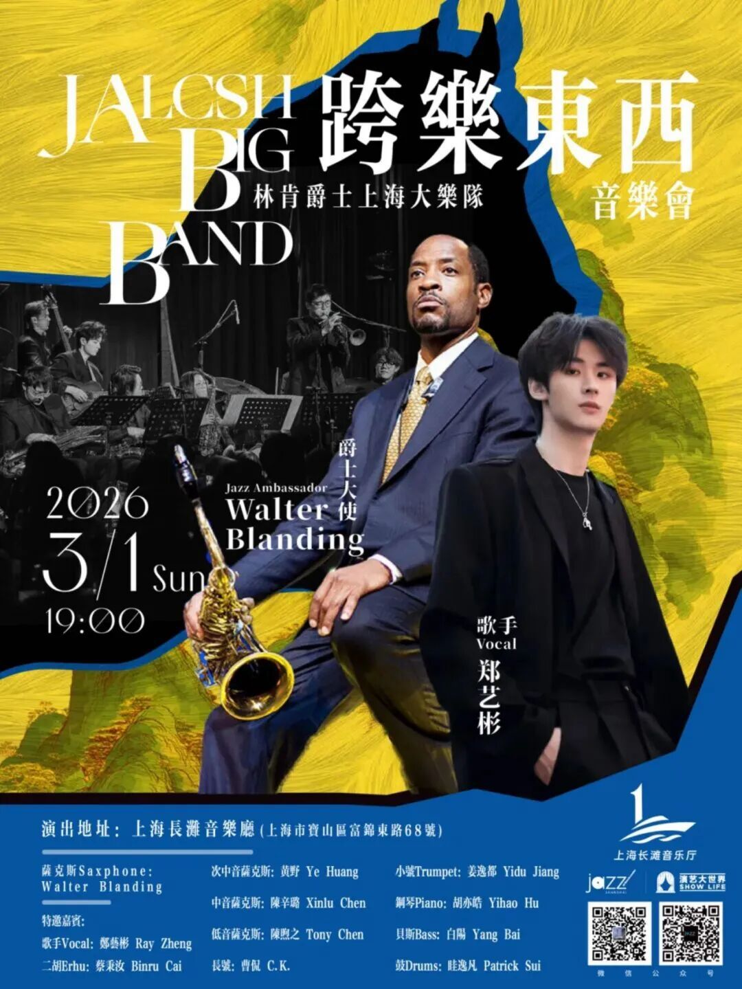 据悉,今年3月1日,林肯爵士上海大乐队将在上海长滩音乐厅迎来马年开年首场大剧院级别演出,由美国林肯爵士大使、乐队音乐总监、国际知名萨克斯演奏家Walter Blanding亲自领衔,携手人气演员、歌手郑艺彬,献上“跨乐东西”主题新春音乐会,用12首跨越时空的中外经典曲目,在光影流转的“东海龙宫”之中,共谱一曲中西合璧的新春华章。