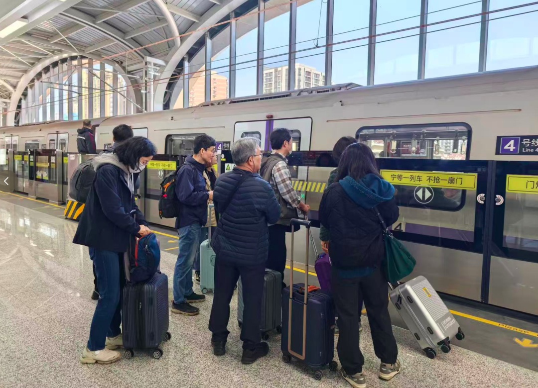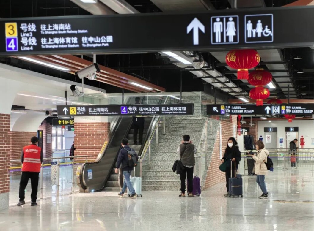 红灯笼、中国结将申城地铁车站装点一新,处处洋溢着喜庆祥和的新春氛围。9天假期(2月15至23日),上海轨道交通累计运送乘客4114.6万人次,较去年同期日均增加13.6万人次,增幅3.06%,最高客流出现在2月22日,达545.5万人次。其中市域机场线累计40.55万人次,日均4.5万人次,较去年同期增加1.1万人次,增幅32.35%。 运营组织方面,针对春运返程客流高峰,上海轨道交通2、10、17号线运行密度增加,市域机场线适时投放8节编组的列车。同时,2月21日至22日各交通枢纽毗邻轨道交通线路1、2、9、10、17号线根据铁路班次安排,加班车延长至次日零点;2月21日至24日,1、2、3、4、9、10号线在首班车前后视情加开载客列车,及时疏运枢纽夜间到达客流。据统计,节日期间通过夜间定点加开投放161列次,集中运送乘客约7.3万人次。 春节期间,地铁上海火车站站、地铁上海虹桥火车站站、豫园站、南京东路站、上海科技馆站、陆家嘴站等车站客流持续高位运行。上海地铁各特色服务团队主动靠前、精准服务,用细致周到的保障传递城市温度。虹桥火车站站“小煜流星轮”服务团队联动“青小运”“青小律”“华山医院门诊党支部”三支专业团队,开展“暖冬春运”志愿活动,为旅客解答疑问、指引方向、搬运大件行李,提供从进站到上车的“一站式”爱心接力服务。南京东路站“Super“指南者团队熟练切换中英双语,为国际友人解答票务疑问、指引换乘路线。市域机场线“暖域 365”服务团队、9号线“松江百灵鸟”服务团队、豫园站“豫10俱进”服务团队、景洪路站“领航员”服务团队、磁浮线浦东1号2号航站楼站服务团队聚焦特殊群体帮扶、夜间客流疏导、行李箱故障维修、盲人乘客护送等实际需求,以专业化、人性化服务守护每一段出行路。