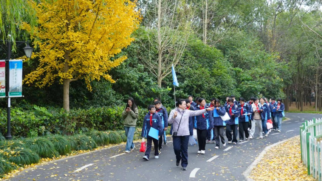 公司同事和领导带学生徒步活动