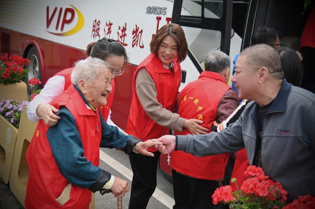 路人看到百岁老人激动上前和她握手