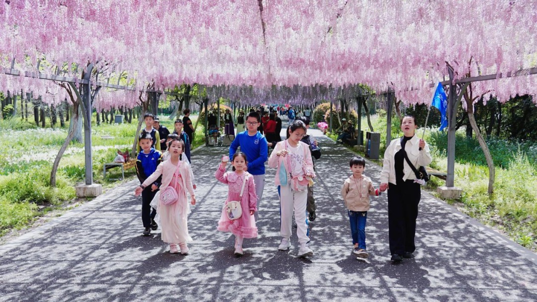 公司同事带学生参观千米紫藤长廊