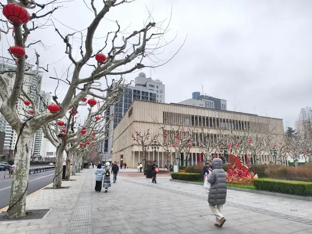 本轮入春冲刺由于昨日平均气温低于10℃戛然而止,今日气温仍然低迷。上午十点,徐家汇书院广场的梧桐枝头挂满红灯笼,不少游客专程前来这座文化地标打卡,还有不少家长带娃出游,享受休闲时光。