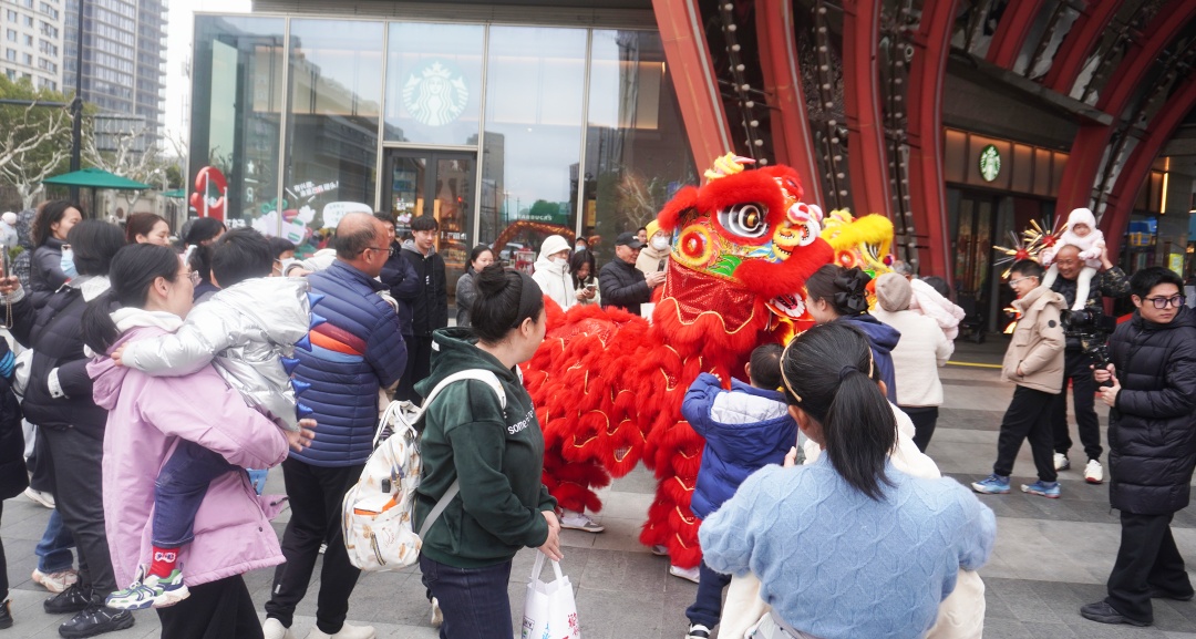 现场热闹的氛围吸引了众多市民与周边上班族驻足观看。人群中,既有白发苍苍的老年市民,也有推着婴儿车的年轻家长,更有刚刚复工、趁工作间隙前来 “沾喜气” 的上班族。“本来过年还有点意犹未尽,没想到出门就看到这么热闹的表演,瞬间觉得精神了!”市民李跃然兴奋地说道:“感觉今年的干劲都被这阵鼓声敲出来了。”还有不少小朋友站在最前排,被舞狮的动作逗得直拍手,大声喊着:“狮子狮子,加油!”