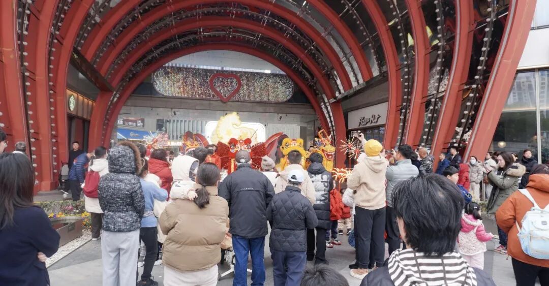 两头威风凛凛的“雄狮”伴随着鼓点腾挪跳跃,时而翘首仰望,时而俯首低顾,神态活灵活现。紧随其后的是两条金色的长龙,在舞龙演员的挥舞下穿梭游走。红绸飞舞,金鳞闪耀,这场震撼的视听盛宴不仅吸引了众多市民驻足,更通过“文化搭台、经济唱戏”的模式,有效带动了商圈的客流攀升。大家纷纷举起手机记录下这充满年味儿的一幕,不少顾客纷纷走进商场开启“逛吃”模式。数据显示,腊月二十八至正月初七,商场整体客流同比提升18%,会员同比增长10%,销售同比提升12%,新春消费市场呈现出蓬勃向上的态势。