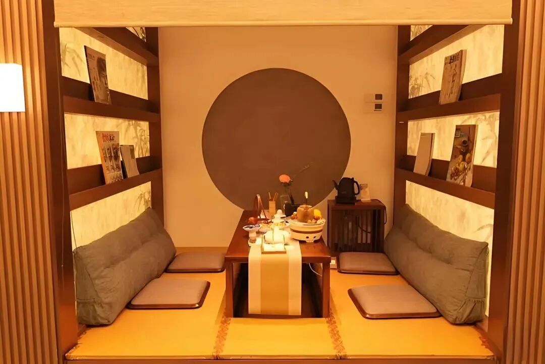 整个茶舍都透着浓浓的禅意,一进门就能让都市打工人浮躁的心静下来。店员会热情讲解茶舍的设计巧思,一步一景都用心至极,融合东方美学和园林艺术,从各个角度看都能发现不一样的风景。