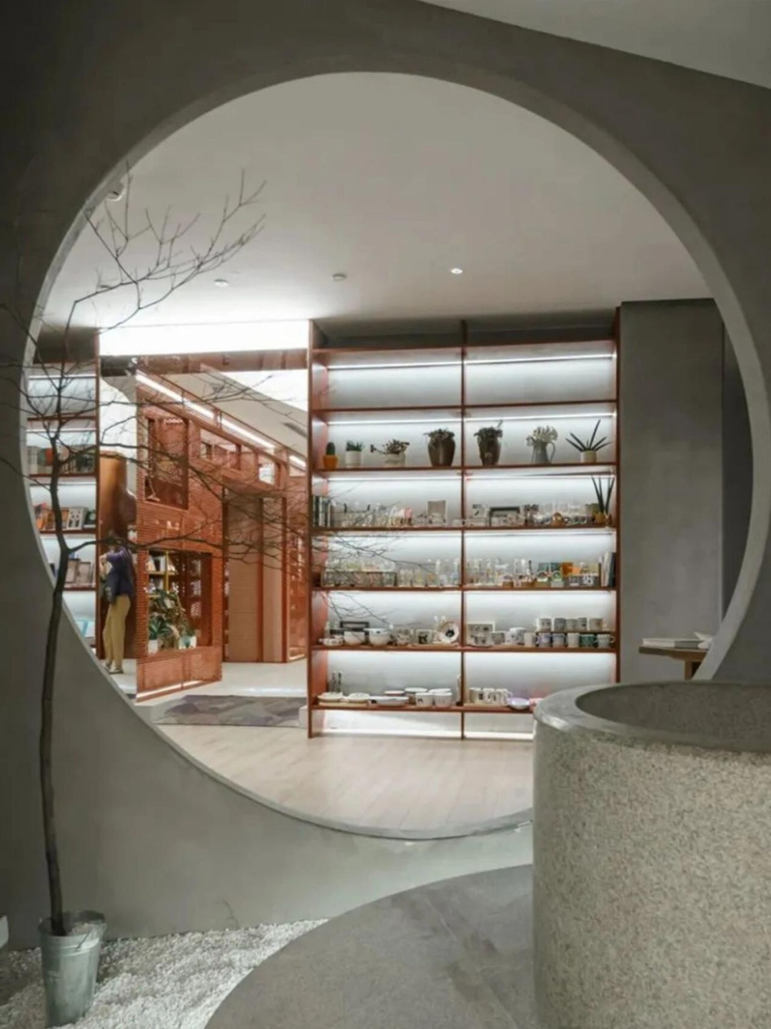 藏在网红建筑恒基·旭辉天地的自营书店二酉,名字源于学者为避免秦始皇焚书而保存典籍的大小酉山。书店设计以“看得见的小酉山”和“看不见的大酉山”为灵感,创造了一方融合诗、书、花、酒、茶的天地。