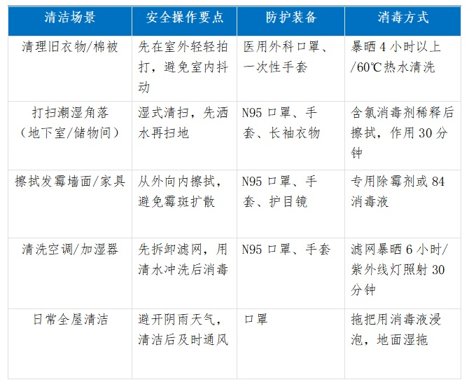❀正确佩戴口罩:清洁时佩戴医用外科口罩或N95口罩,尤其清理发霉区域、旧物或空调时,能有效阻挡孢子吸入;