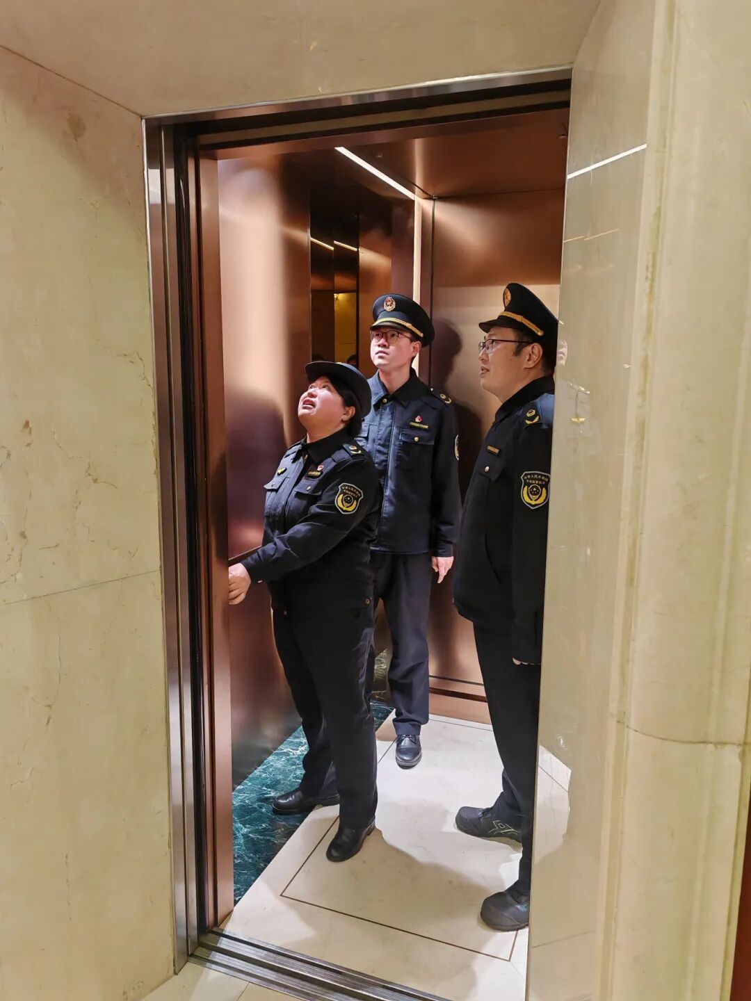 春节期间,大厦、酒店人流密集。执法人员对公众聚集区域的电梯开展专项检查,现场测试层门、轿门运行状态,测试紧急报警装置是否有效。不仅如此,他们还模拟突发故障场景,实战检验维保单位的应急响应速度——是真能3分钟赶到,还是纸上谈兵?一测便知。