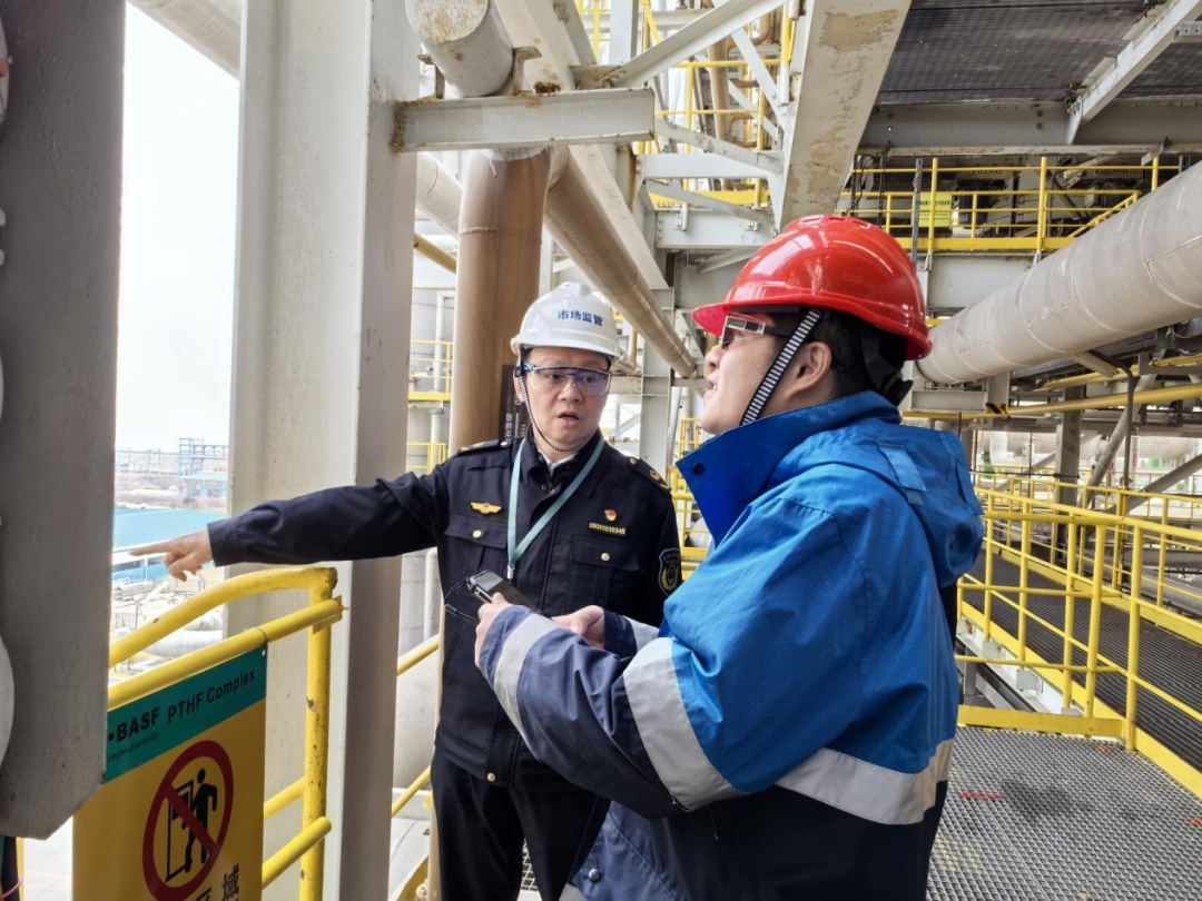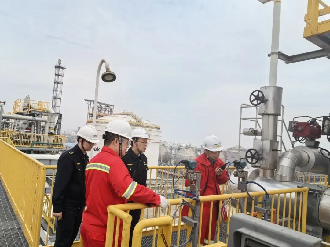 极易燃爆、极易自聚的丁二烯球罐,是化工区里最危险的“定时炸弹”之一。执法人员顶着刺骨寒风,攀上数十米高的球罐平台。检查安全阀有效期、核验紧急切断装置、测试液位仪表可靠性……每一个细节都不放过。不放过任何一丝跑冒滴漏,坚决防范超压泄漏风险——这是对脚下这座城市的安全承诺。
