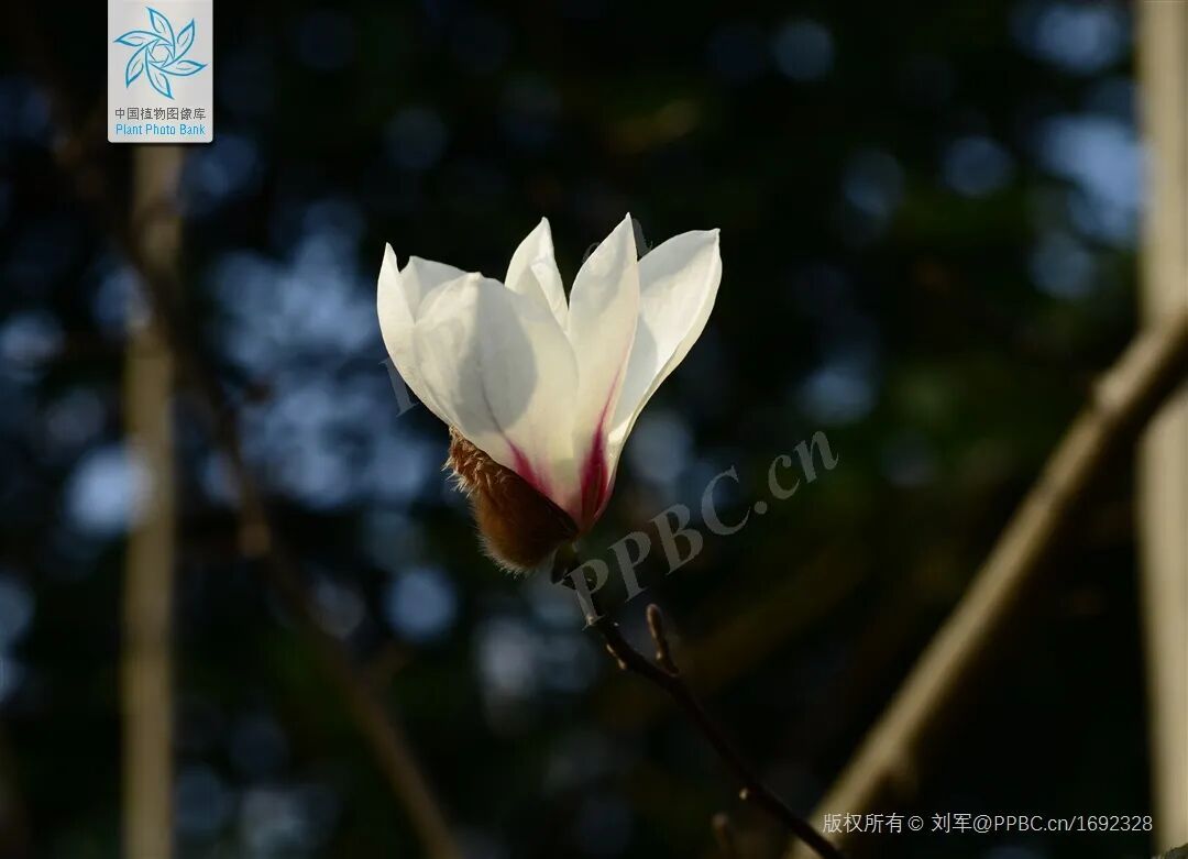 辨识点:2月底抢先开放,花期比白玉兰早,外轮花瓣退化呈萼片状,内轮花瓣浅紫带白。