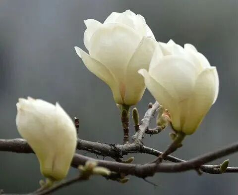 白玉兰花朵半开未开时,花型饱满,寓意吉祥团圆,居家盆栽或插花,可以促进家人之间的感情,增福添运。