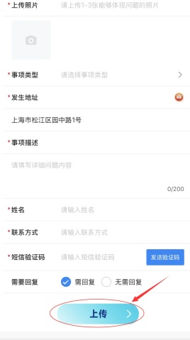5.填写上报人姓名、手机号码及验证码,并选择是否需要回复;
