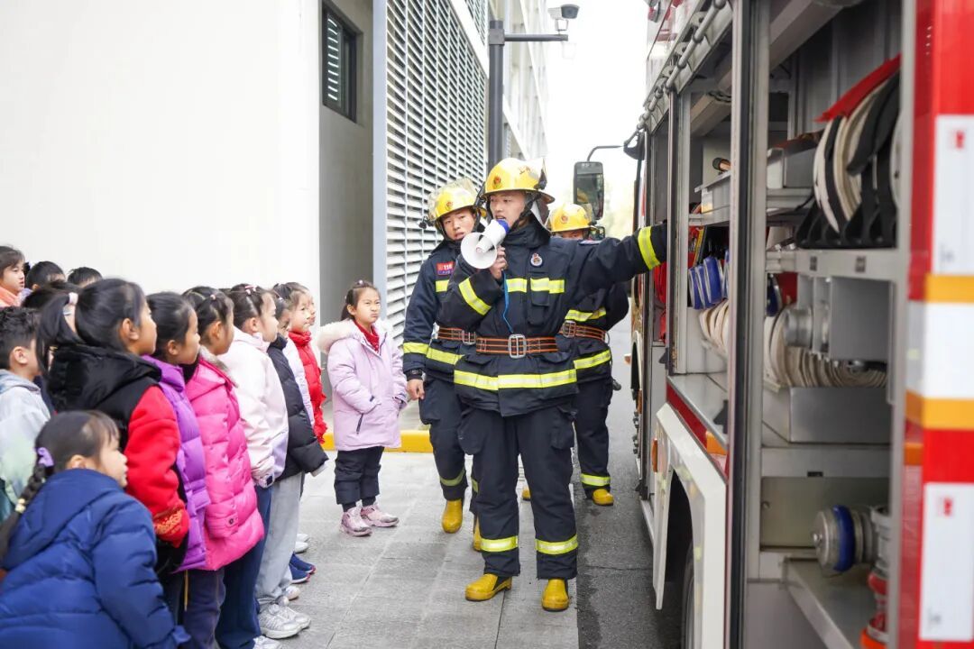 上海市嘉定区普通小学白银路分校承办的马陆镇2026年爱心寒托班上,马陆镇专职消防救援站战斗员为同学们详细介绍了火灾的种类、灭火器的使用方法和疏散逃生要点。通过互动问答、情景模拟等方式,孩子们不仅对消防安全有了生动认识,而且掌握了不少自救知识。消防车也开进了校园,亲眼见到消防车的孩子们感到惊喜不已,踊跃参与观摩,近距离了解消防器材。