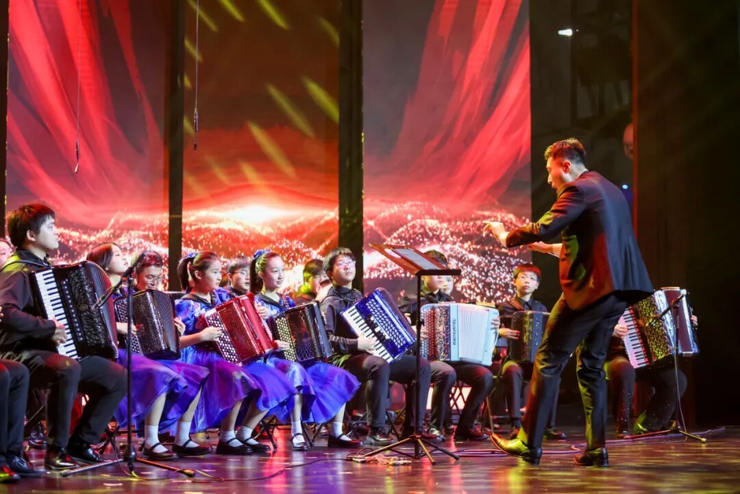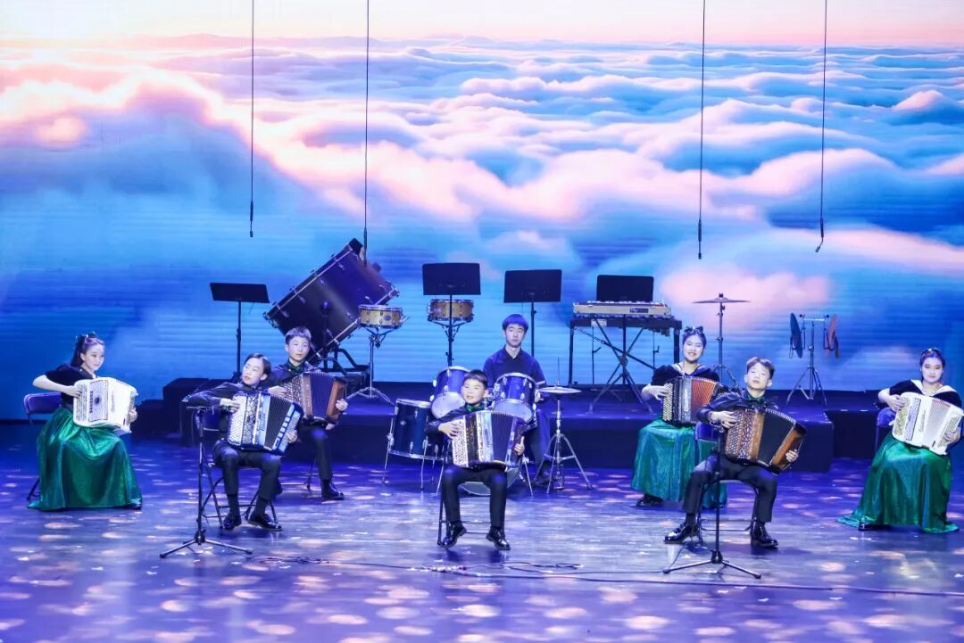 展演中,长三角区域乃至全国各地演奏家的艺术联动成为一大亮点。江苏常州的演奏团队带来《生命万岁》,展现了上海音协指导下长三角手风琴普及教学的丰硕成果;上海老年大学手风琴队与宁波市海曙社区学院手风琴乐团首次携手,以俄罗斯经典民歌《红莓花儿开》诠释中老年演奏者的艺术情怀,也让沪浙两地的情谊在琴音中交融。同时,这场展演更是一场跨越地域的艺术相逢,四川音乐学院附中学子金城曦与上海黄浦青少年艺术活动中心管弦乐团合作的原创作品《边界之舞》,打破地域与声音的边界;北方民族大学花儿印象手风琴乐团带来的西北民族原创作品《花儿随想》,将西北大地的风情融入手风琴旋律,让民族文化在舞台上绽放光彩。