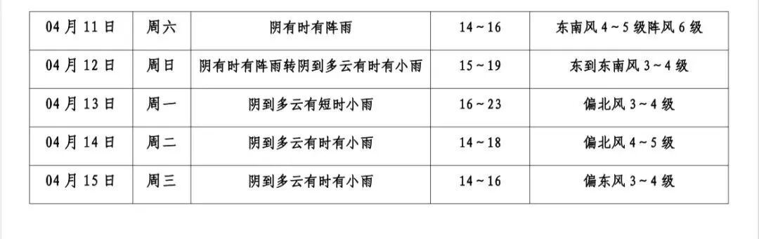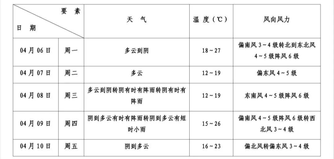 本区未来十天天气预报