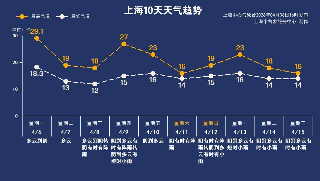 清明假期最后一天,阳光露脸,气温飙升,闵行站最高气温升至29.4℃,“热度”超标,体验初夏体感。受弱冷空气影响,下午风力逐渐加大,晚间北到东北风4—5级阵风6级,沿江地区5级阵风6—7级。