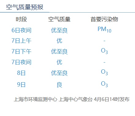 根据上海市环境监测中心预报,