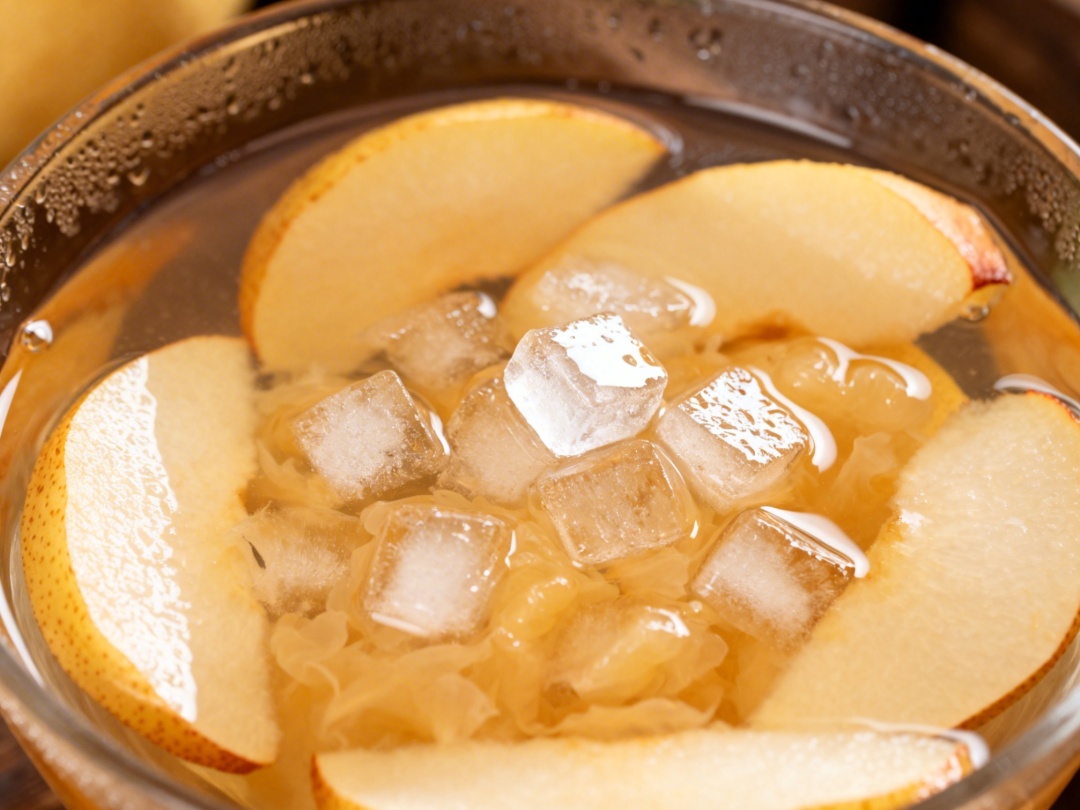 将梨切块,与泡发的银耳、百合一同炖煮至软烂。银耳富含植物胶质,和百合搭配梨食用,不仅对呼吸道有益,还能改善肠道健康和皮肤干燥症状。