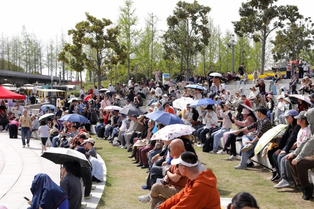 对于居住在公园周边的市民而言,这场音乐会更是阖家休闲的好去处。王立飞带着父母和孩子一同前来,这已是他第三次打卡“艺起TOP·周周有戏”活动:“每周家门口都有免费的高水平演出,坐在草地上,一家人赏春景、听音乐,非常有意思。”