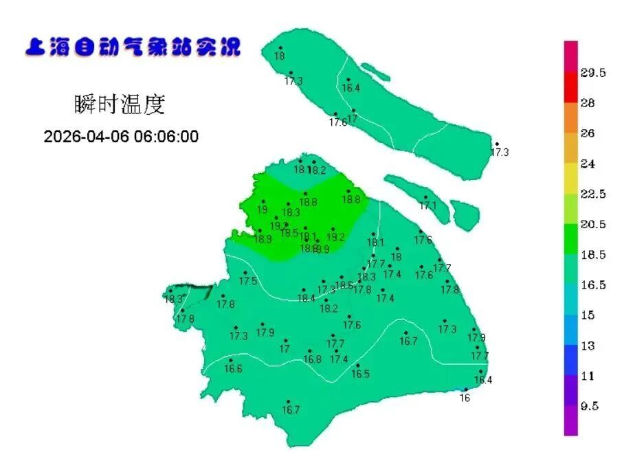 今天是小长假最后一天,上海是多云到阴的天气。受弱冷空气影响,下午风力加大,北到东北风4—5级阵风6级,沿江沿海地区5级阵风6—7级。早间气温不算低,全市普遍在16—19℃之间,徐家汇站为18.3℃。预计白天最高气温可达25℃附近,午后体感温暖舒适。相对湿度90%—65%。