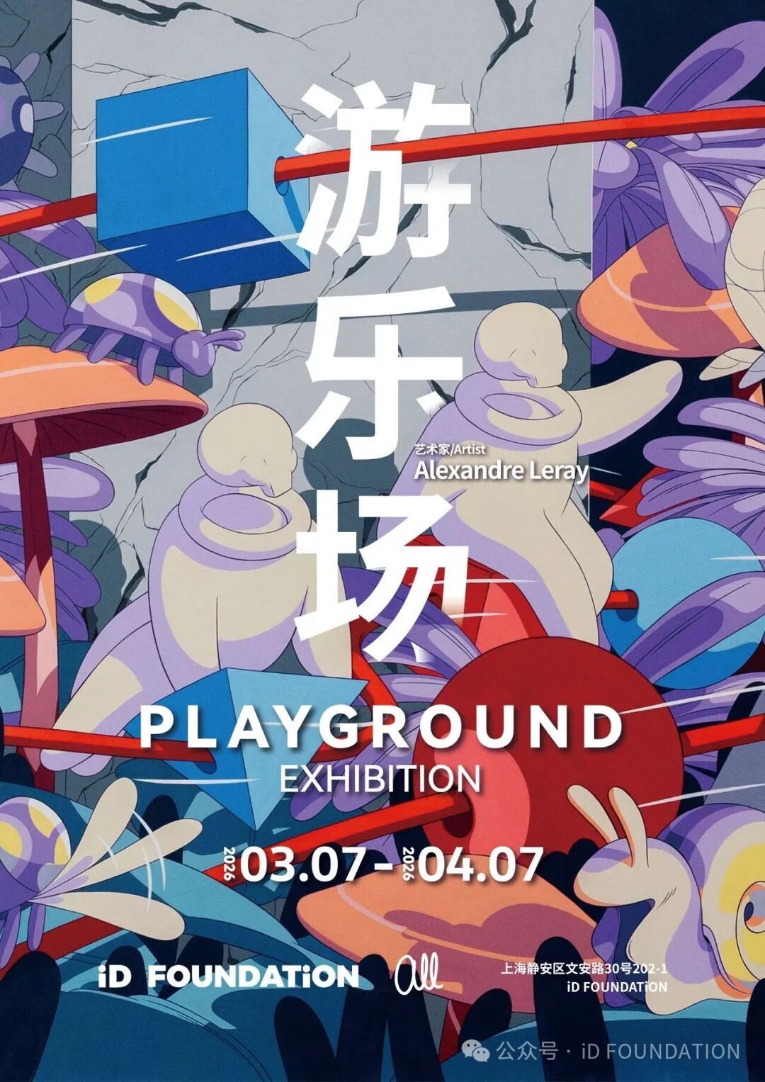 此为巴黎艺术家Alexandre Leray的个人项目“PLAYGROUND·游乐场”。在这次展览中,Alexandre Leray——这位从设计师转化为插画家与雕塑家的艺术家,邀请人们回到那片内心的游乐场。他在那里诞生了“ALL”,一个无龄、无面的存在,一种源自普世童心的姿态;它无声却有力,象征着行动与意识的合一,身体与想象的共鸣。每件作品都是一封邀请函,邀请人们去梦、去笑、去漂浮,去成为那个曾经的自己,在世界尚未将“重量”交付之前。透过点描、色彩与造型,Leray搭起一座桥,连接文化、连接世代、连接生命的不同阶段。