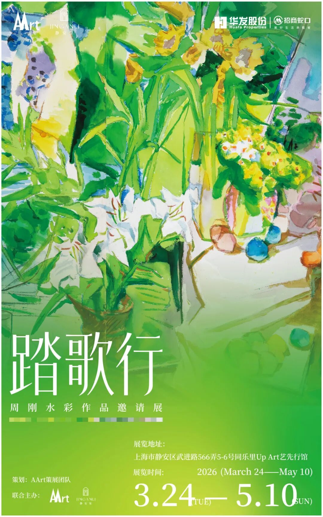 “踏歌”是中国最古老的艺术形式之一。它不只是田间地头的欢庆舞蹈,更是一种与山川同游、与草木共生的生命姿态——劳作之余,边走边唱,在自然的节拍中净化心灵,发现生活之美。摩天楼宇之间,我们能否乘着春风,踏准自然的节拍,寻回那份与天地同频的呼吸?展览以艺术家周刚的两件水彩静物新作为起点,传达出艺术家对于东方美学的思辨。优秀历史建筑与当代水彩创作在此对话。檐下廊间,皆是画意。
