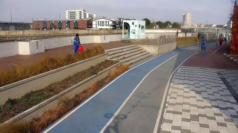 春天的热闹背后,是日复一日的守护。滨水步道旁,环卫人员正在捡拾垃圾、清理杂物。这些看似寻常的画面,恰是城市在热闹中保持整洁有序的生动注脚。正是这些默默付出的身影,守护着公共空间的舒适与洁净。