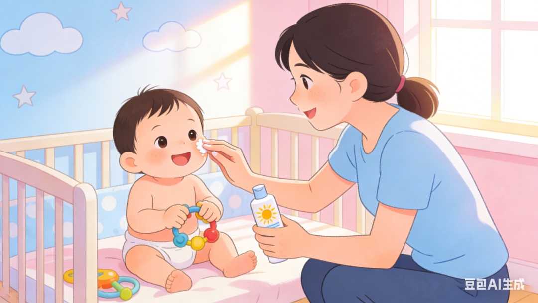 分龄防护:6月龄以下宝宝避免直接日晒,外出靠物理遮挡,戴宽檐遮阳帽、穿长袖衣物,用婴儿推车遮阳篷,避开10点-16点紫外线最强时段;6月龄以上可搭配婴儿专用物理防晒霜,选含氧化锌或二氧化钛的产品,SPF15-30、PA+++即可,无需追求高倍数。