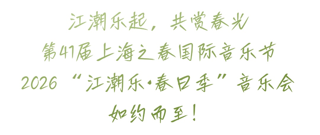 这个春天,我们将于4月11日至5月31日的每周六下午(具体安排详见后续推文),推出2026 “江潮乐·春日季”系列音乐会,每期都将带来独特主题:春光烂漫中的繁花绮梦,音乐剧和影视原声的经典再现,节日里的青春舞曲与童心乐章……