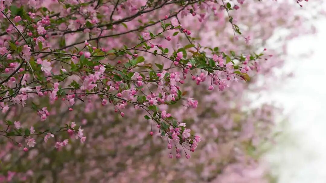 在垂丝海棠的温柔绽放中,