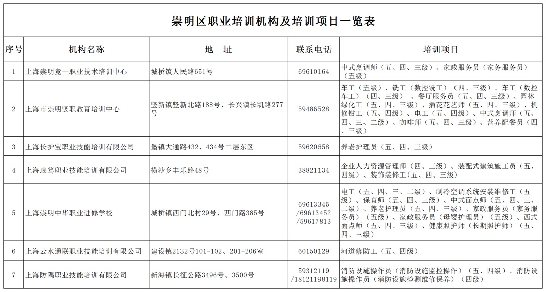 『崇明区技能人才培训补贴』