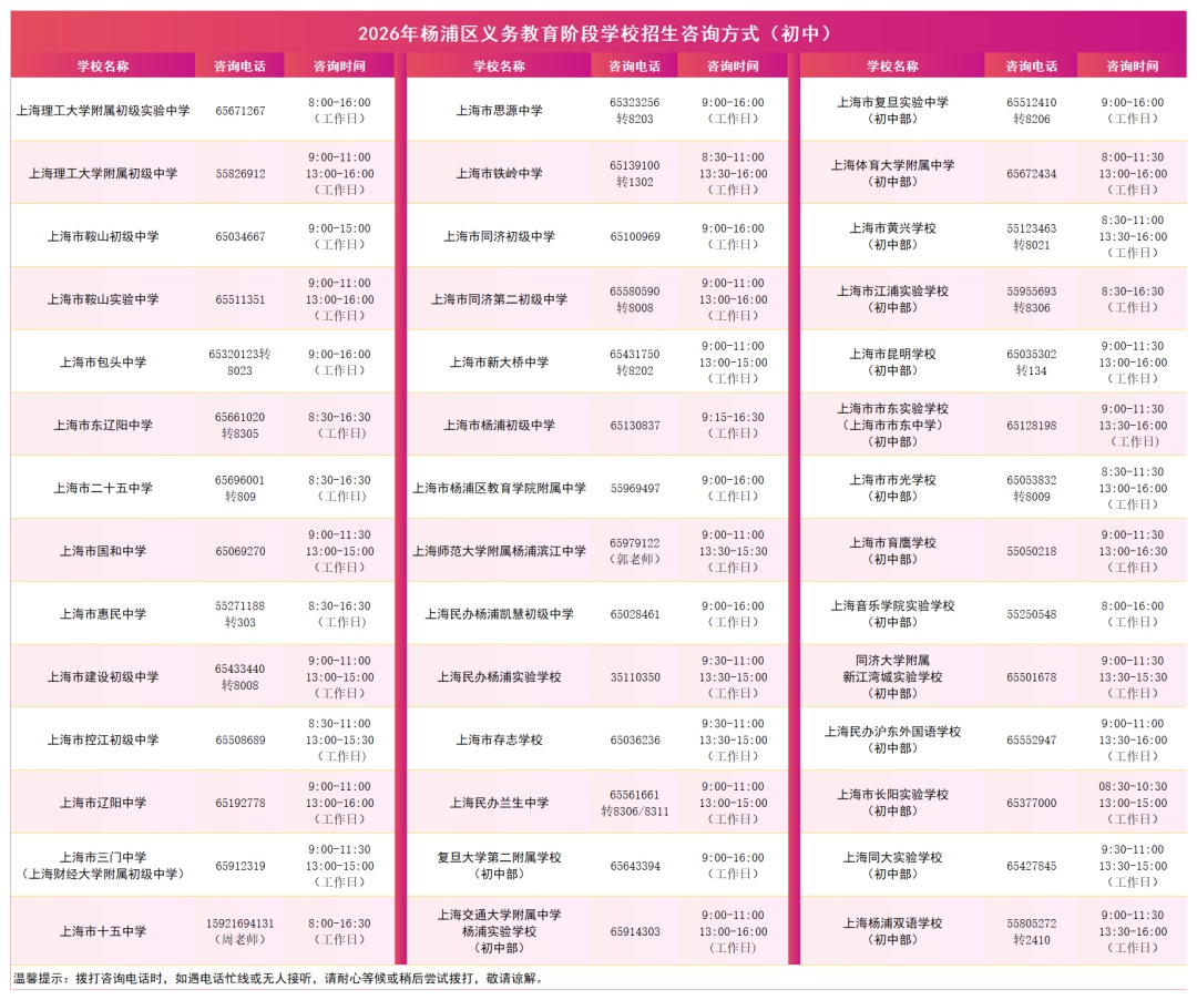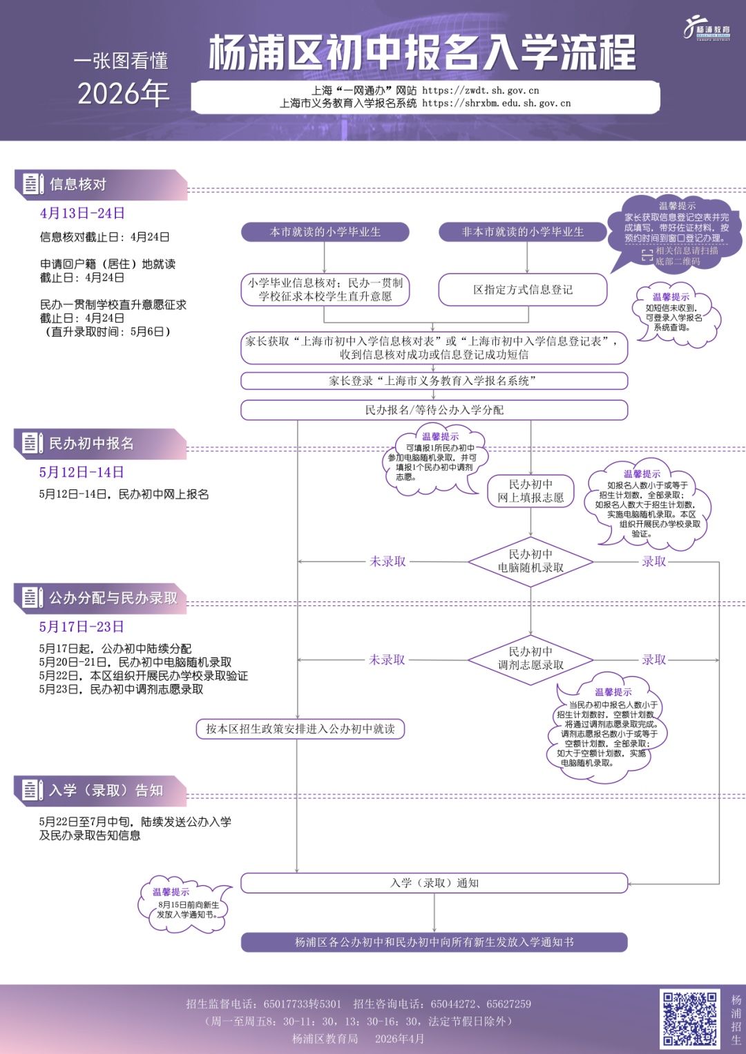 2026年杨浦区义务教育阶段学校招生入学工作一图读懂→