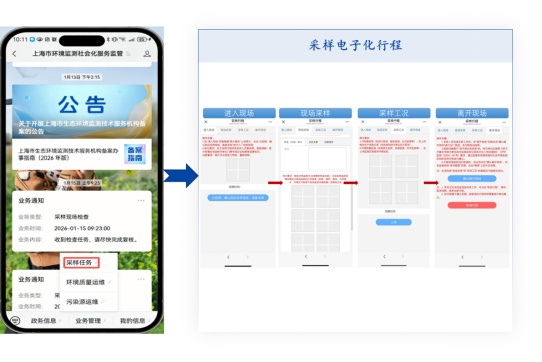 通过全市技术服务机构管理系统和微信端工具,在采样关键节点(进入现场、现场采样、采样工况等)实时上传现场照片与时空信息,形成不可篡改的电子证据链,实现采样作业全程可追溯、可核查。