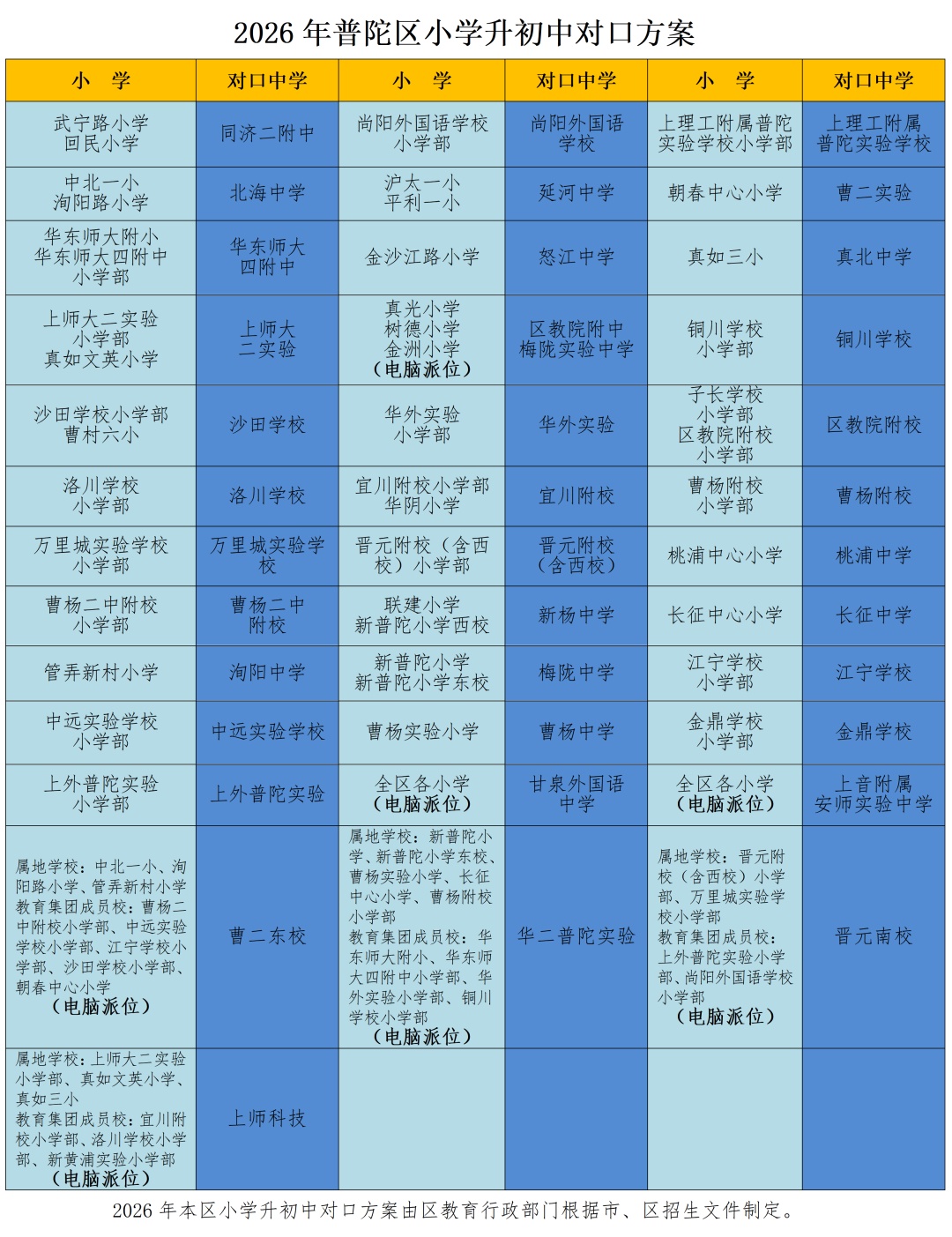 2026年普陀区义务教育阶段学校招生入学政策问答