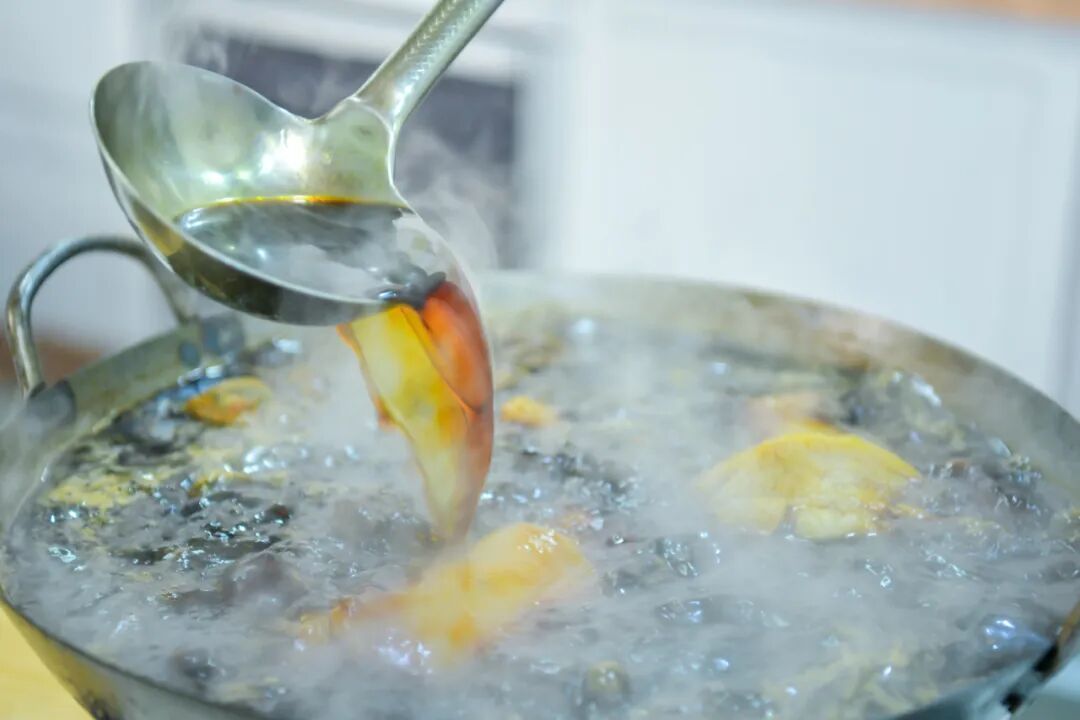 焯好水的蹄髈捞出沥干,香料依次入锅,醇厚的老卤汁缓缓舀入,大火烧开后转小火慢炖。“枫泾丁蹄的卤制,讲究十料八味,老卤复卤复添,更要经过三次大火、三次小火交替烧、煮、焖,整整4个小时,一步都不能急。”沈文的话语,道出了美味背后的匠心。这道非遗美味,以本邦“浓油赤酱”为核心味型,独创36道工序、“十料八工”制作工艺,八大烹制工序道道严苛:拔毛需一根不留,去骨要三秒内完成,老卤配方更是传承人的独门机密:每日烧制添新料让卤香醇厚,配料还随季节微调,冬季加红枣、枸杞,更添温润滋味。