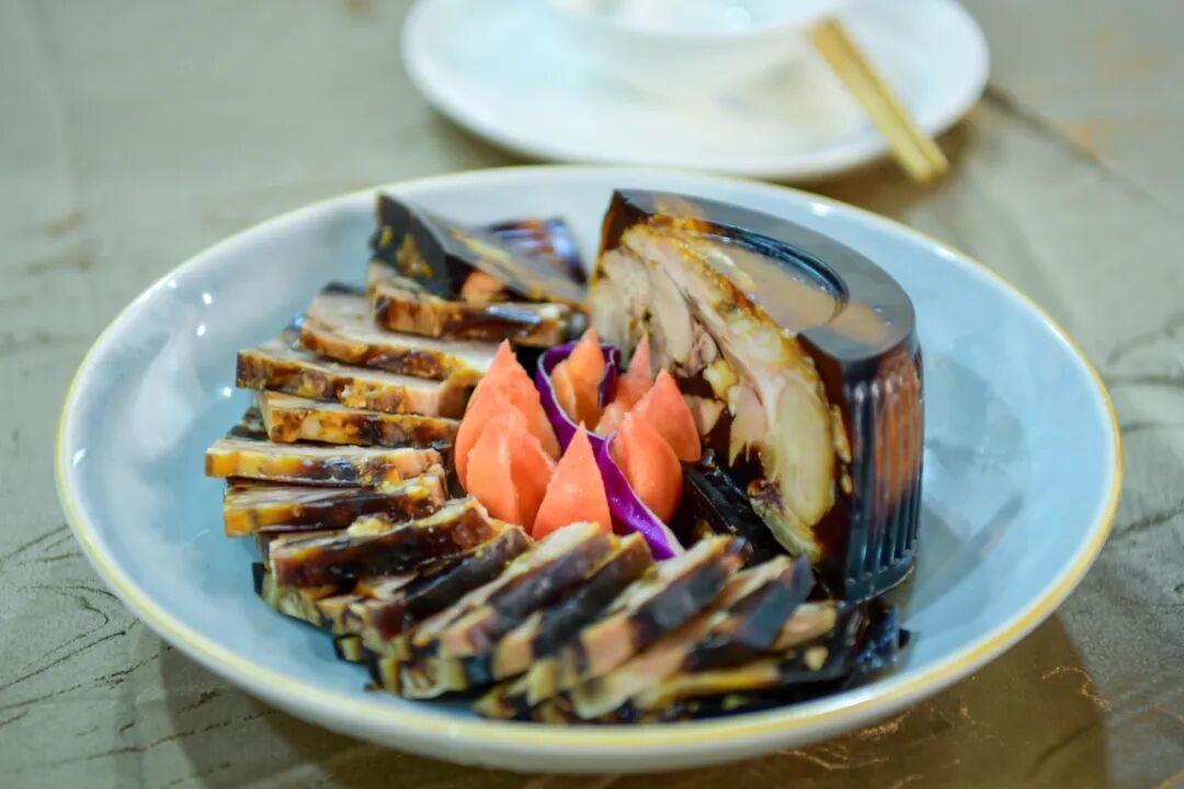 枫泾丁蹄,是本邦菜中当之无愧的经典冷盘,浓油赤酱勾勒江南风味精髓,卤香醇厚沉淀百年时光底蕴,既是沪上宴席常客,更是金山独树一帜的美食名片。
