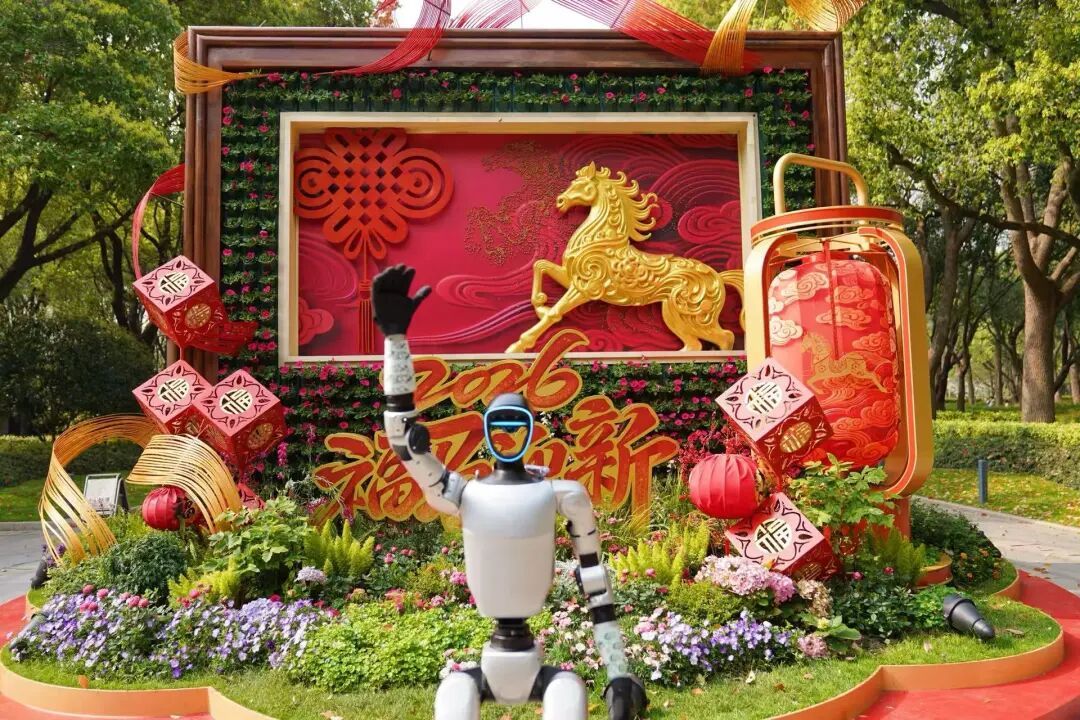 除了赏花,在公园内还看到萌趣机器人互动表演,为春日游园增添了趣味性。不少市民前来踏青,或是驻足赏花、湖边闲坐,或是带娃踏过溪石,悠闲享受春日时光,感受春日的美好。