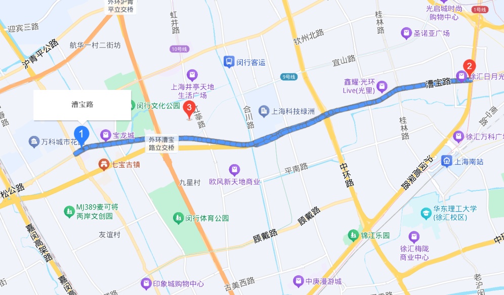 漕宝路东起漕溪路,西至七宝镇。1936年筑,以漕河泾、七宝各一字命名。