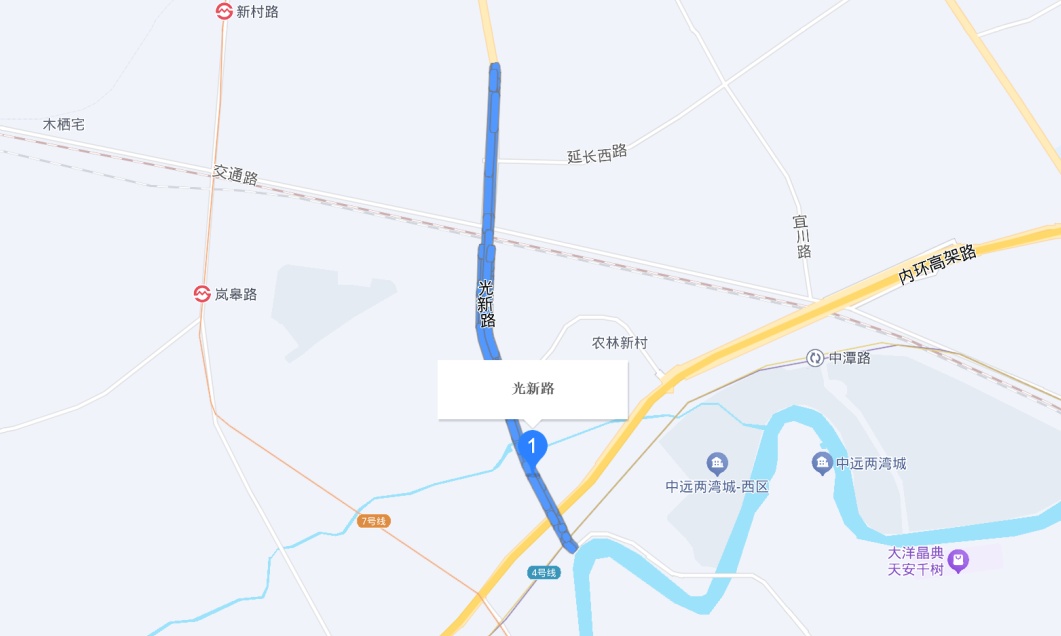 光新路南起光复西路,北至交通路。1949年前筑,最初以区片名命名朱家湾街,1953年因此路从光复西路通往甘泉新村,改名光新路。