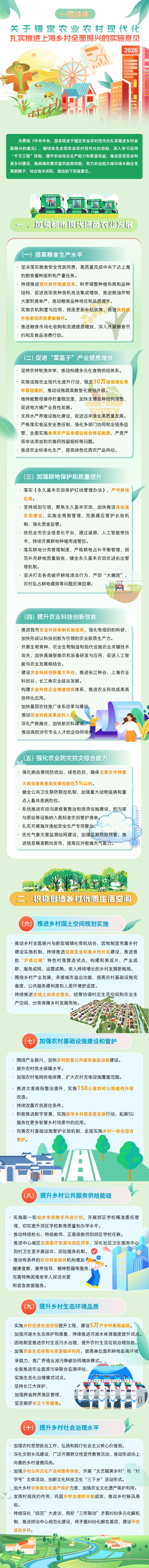 为贯彻《中共中央、国务院关于锚定农业农村现代化扎实推进乡村全面振兴的意见》,上海发布《关于锚定农业农村现代化 扎实推进上海乡村全面振兴的实施意见》,《实施意见》的出台对农业农村现代化发展将起到什么作用?《实施意见》主要包括哪些内容?一起来看看吧→