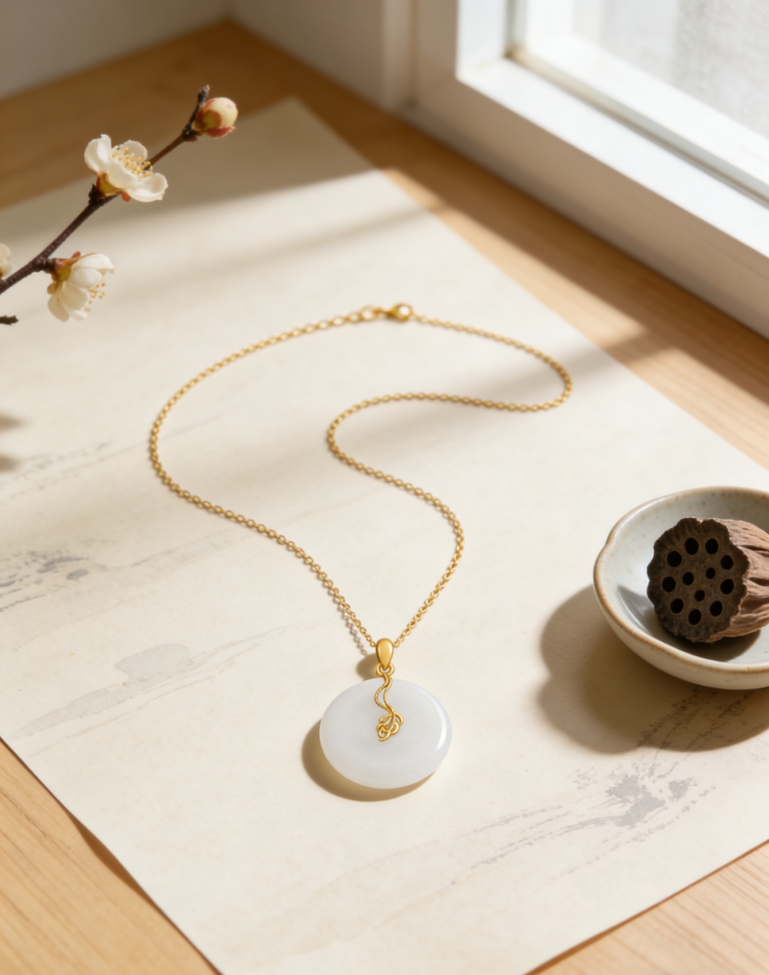 旗袍盘扣,是中式服饰的绳结密码;和田玉,是华夏文明中温润的大地精灵。当这两种承载着东方智慧的文化符号相遇,便诞生了这一系列将传统意蕴与现代设计熔铸于一体的和田玉首饰——发簪挽云鬓,项链绕颈间,耳环坠星河,吊坠承雅韵,每一件作品都是行走的东方美学诗章。