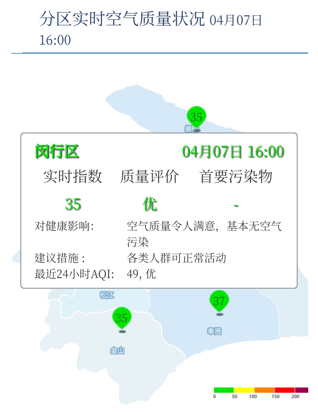 闵行区AQI为35,优,