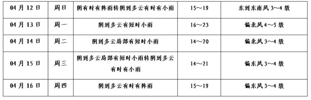 本区未来十天天气预报