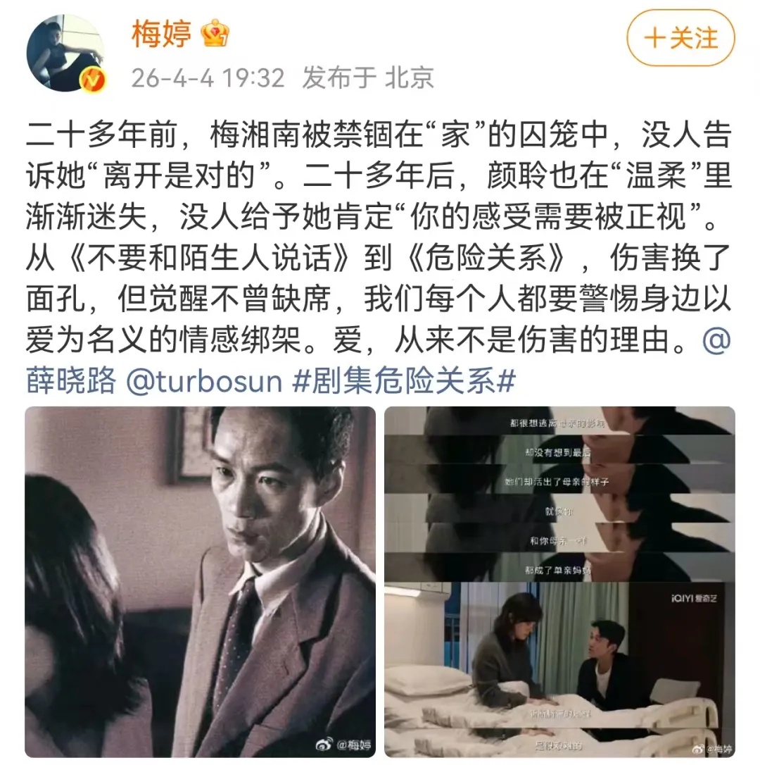 从《不要和陌生人说话》到《危险关系》,伤害换了面孔,但觉醒不曾缺席,我们每个人都要警惕身边以爱为名义的情感绑架。”