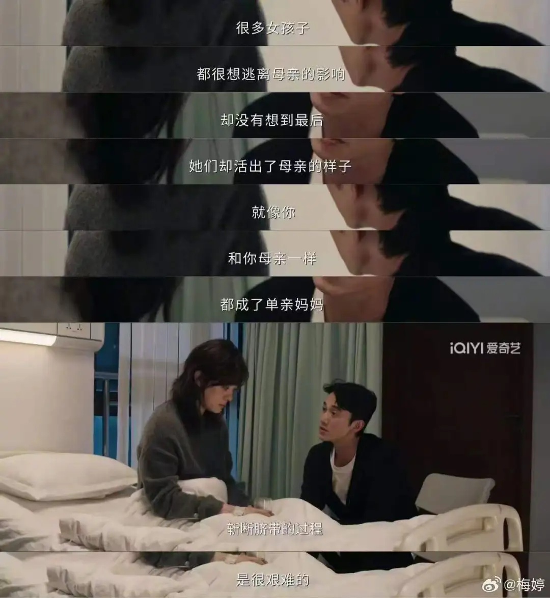 “二十多年前,梅湘南被禁锢在‘家’的囚笼中,没人告诉她‘离开是对的’。二十多年后,颜聆也在‘温柔’里渐渐迷失,没人给予她肯定‘你的感受需要被正视’。